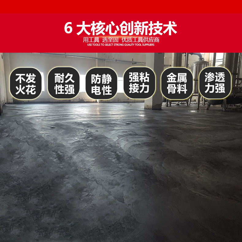 如表面出現(xiàn)浮漿,應(yīng)使用圓盤(pán)機(jī)械鏝(模板邊緣使用木抹)均勻的將混凝土表面的浮漿破壞掉。撒布骨料,以平均每平方米 5 公斤的用量,分兩次撒布在初凝的混凝土表面(完成第一步撒布工作,待耐涂硬頂吸收一定水份后, 進(jìn)行機(jī)械圓盤(pán)的機(jī)械鏝抹作業(yè);待第一層不發(fā)火硬化劑材料硬化至一定階段,再進(jìn)行第二次材料撒布作業(yè)),然后機(jī)械鏝抹作業(yè)使之成為一個(gè)整體,從而獲得厚度為 2—5 毫米且具有良好的耐磨、防塵、防爆和美觀性能的不發(fā)火耐磨 地面。