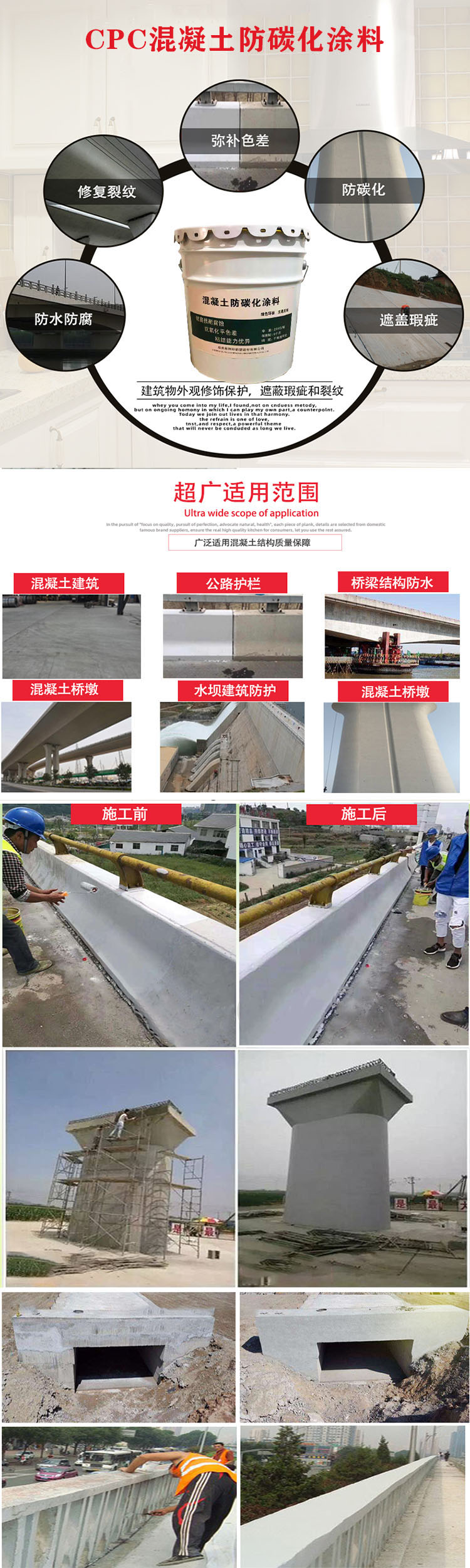 ★ 預(yù)防混凝土中和和輕度化學(xué)腐蝕,防范氯離子、酸、堿和鹽類物質(zhì)滲透到混凝土中,預(yù)防鋼筋腐蝕;