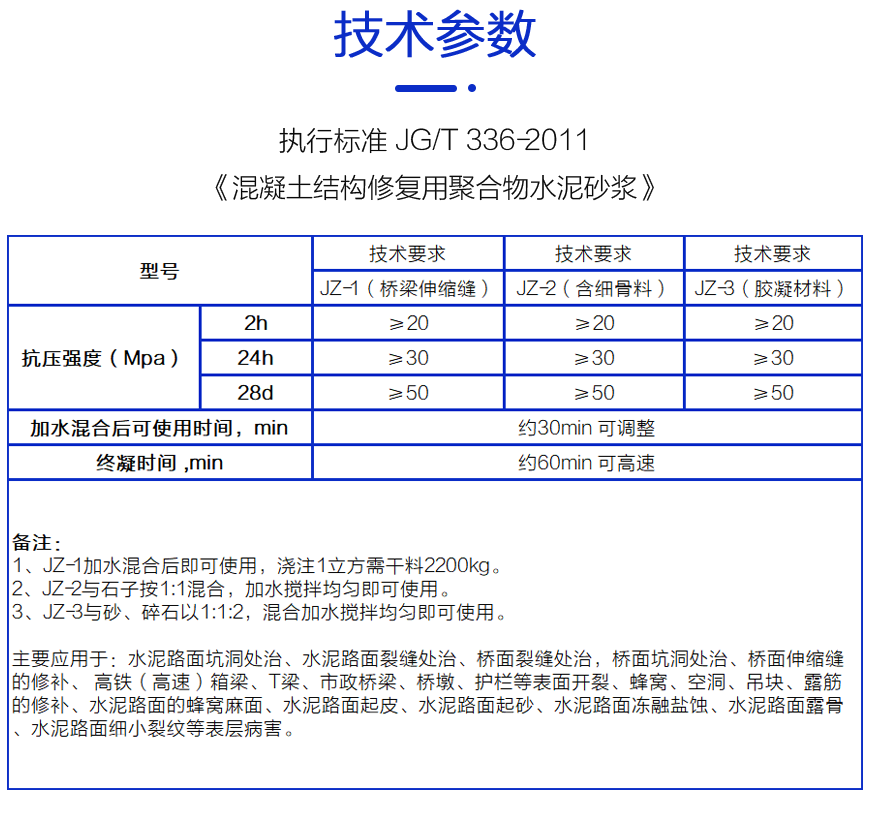 特點粘結(jié)力強、耐沖擊、2小時快速通車。
